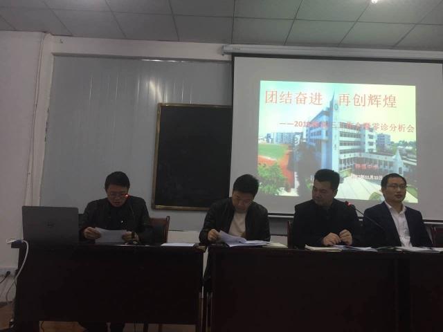 2017年11月22日,我校以“团结奋进,再创辉煌”为主题的高三毕业班工作会在学校高三会议室召开。高三年级主任吴刚副校长主持会议,会上高三年级副主任王林作了以《狠抓踩线保人头,课堂高效促质量》为题的零诊质量分析报告,对我校仁寿零诊考试情况进行了详尽而具有针对性的分析,肯定了各班在本次考试中取得了的成绩,指出了存在问题的班级和学科,为高三以后的工作提出了很好的意见和建议。